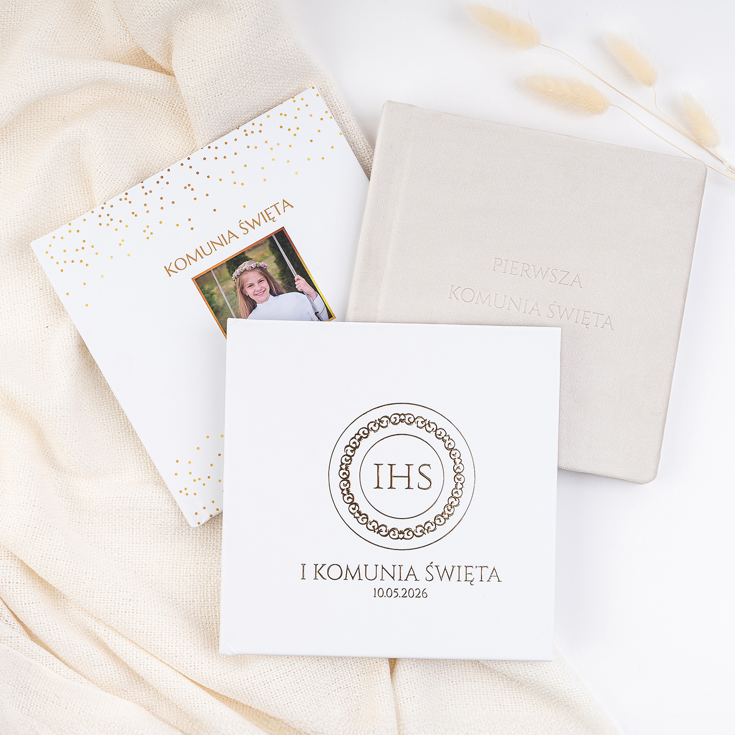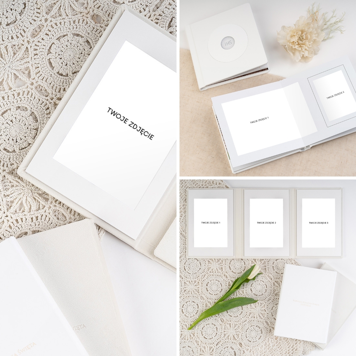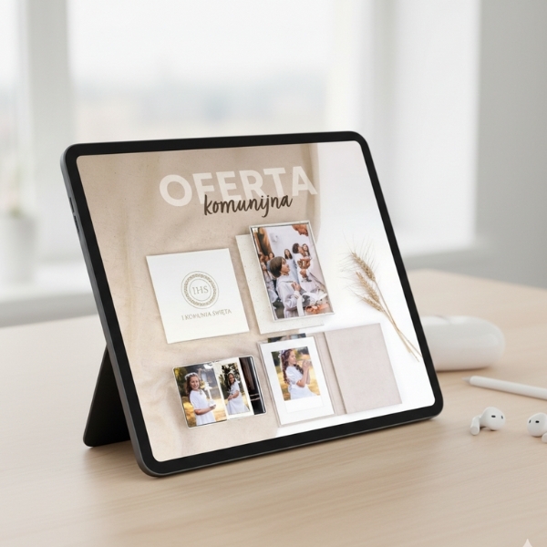Pobierz darmowe makiety produktów komunijnych i twórz profesjonalne wizualizacje z własnymi zdjęciami. W kilka minut pokaż klientom, jak mogą wyglądać fotoprodukty z ich sesji komunijnej. Wyróżnij swoją ofertę, buduj zaufanie i zwiększ sprzedaż w sezonie komunijnym!